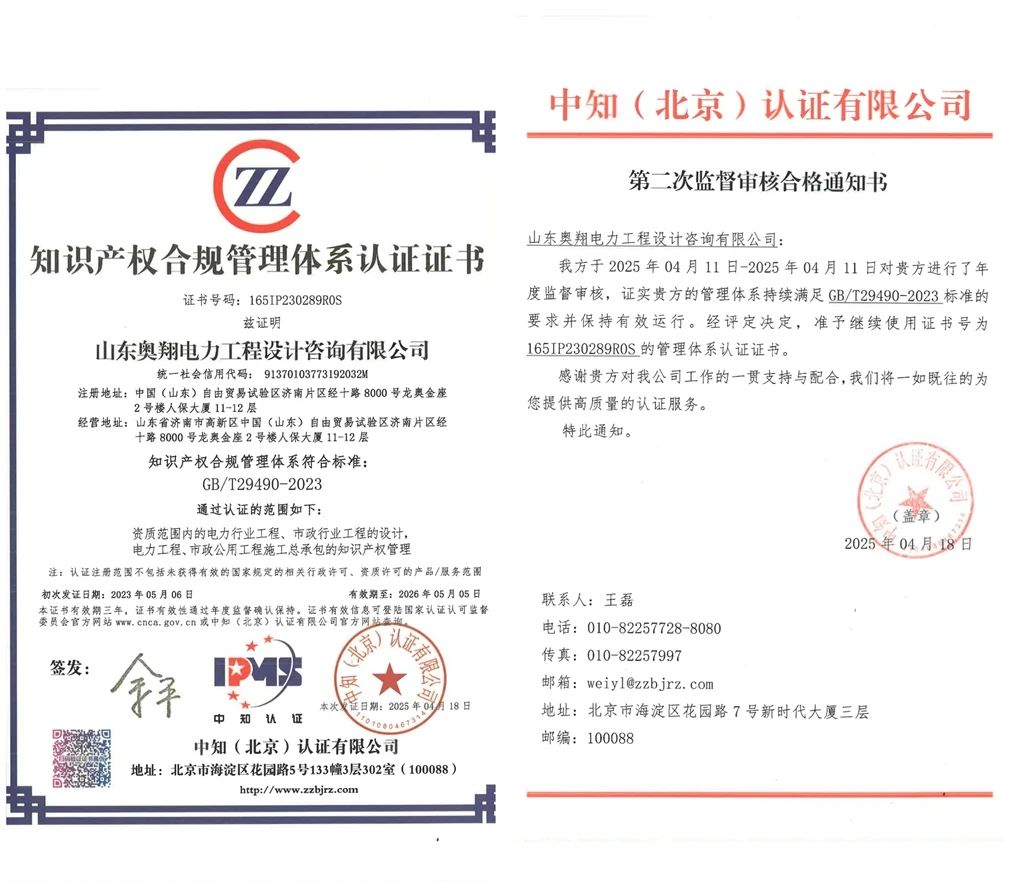 山東奧翔電力工程設(shè)計咨詢有限公司再獲國家級認證