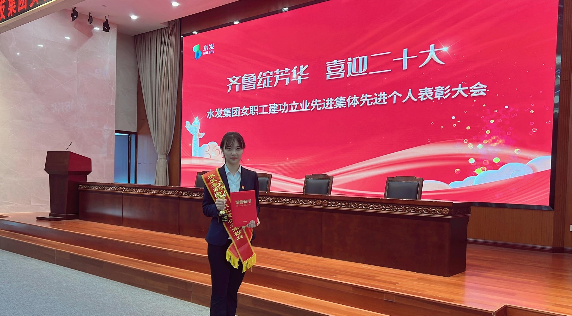 3月7日,在水發(fā)集團召開的水發(fā)集團女職工先進集體先進個人表彰大會上,山東水發(fā)新能源發(fā)展有限公司綜合部副經(jīng)理敬佳湲榮獲“水發(fā)集團女職工建功立業(yè)十佳標兵”稱號,并作為四名代表之一作典型發(fā)言。
